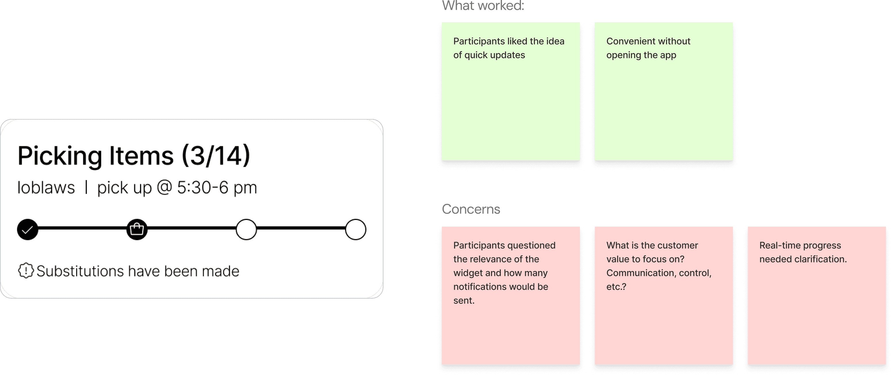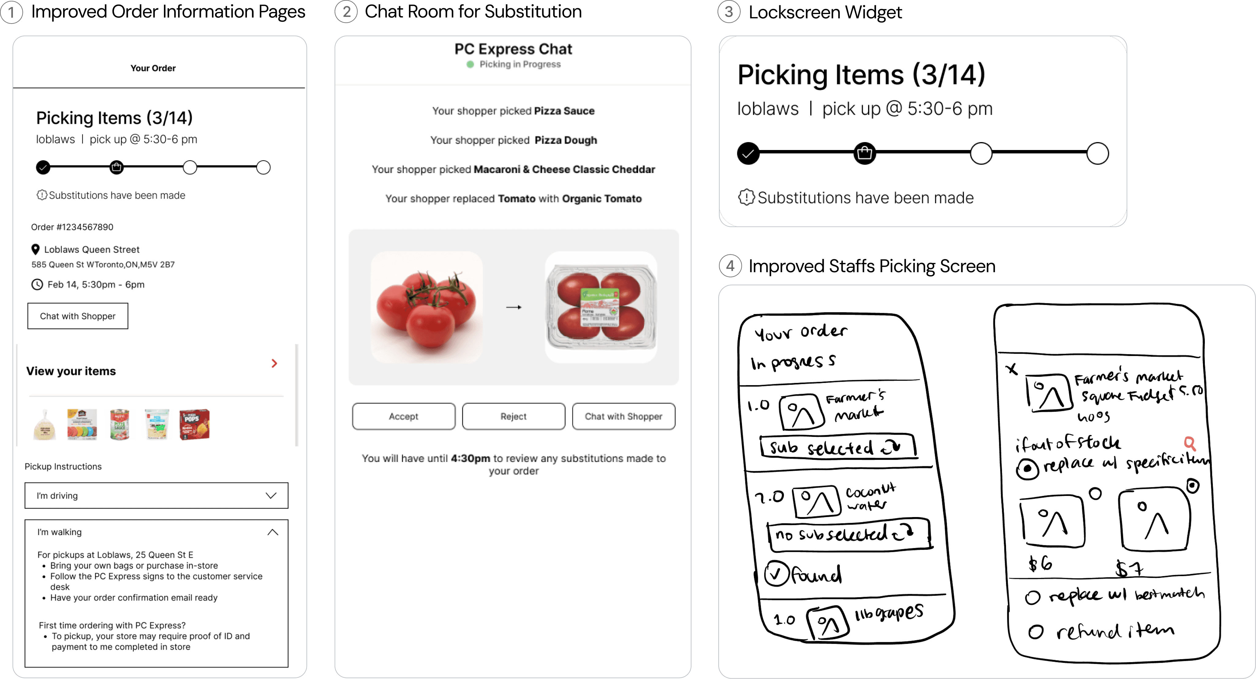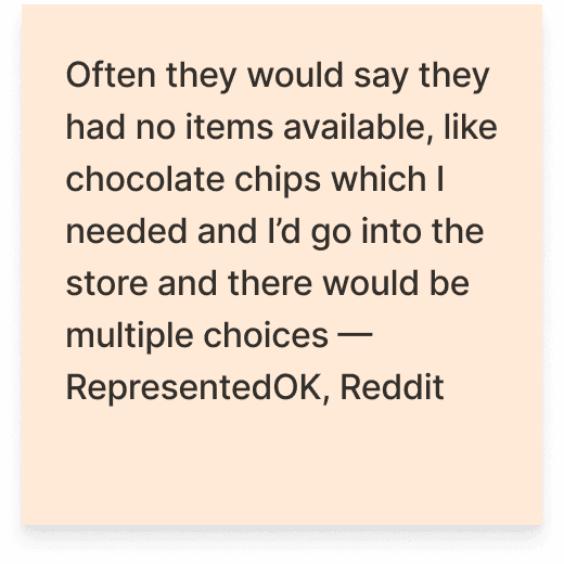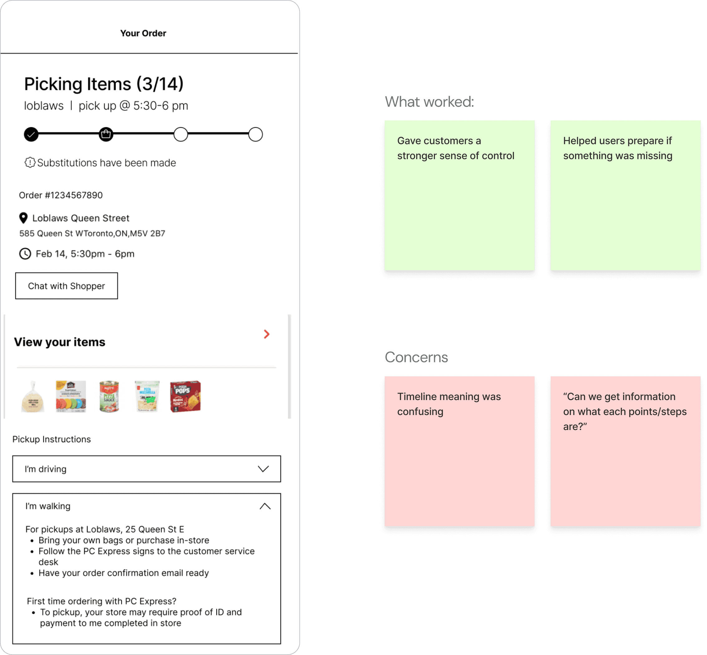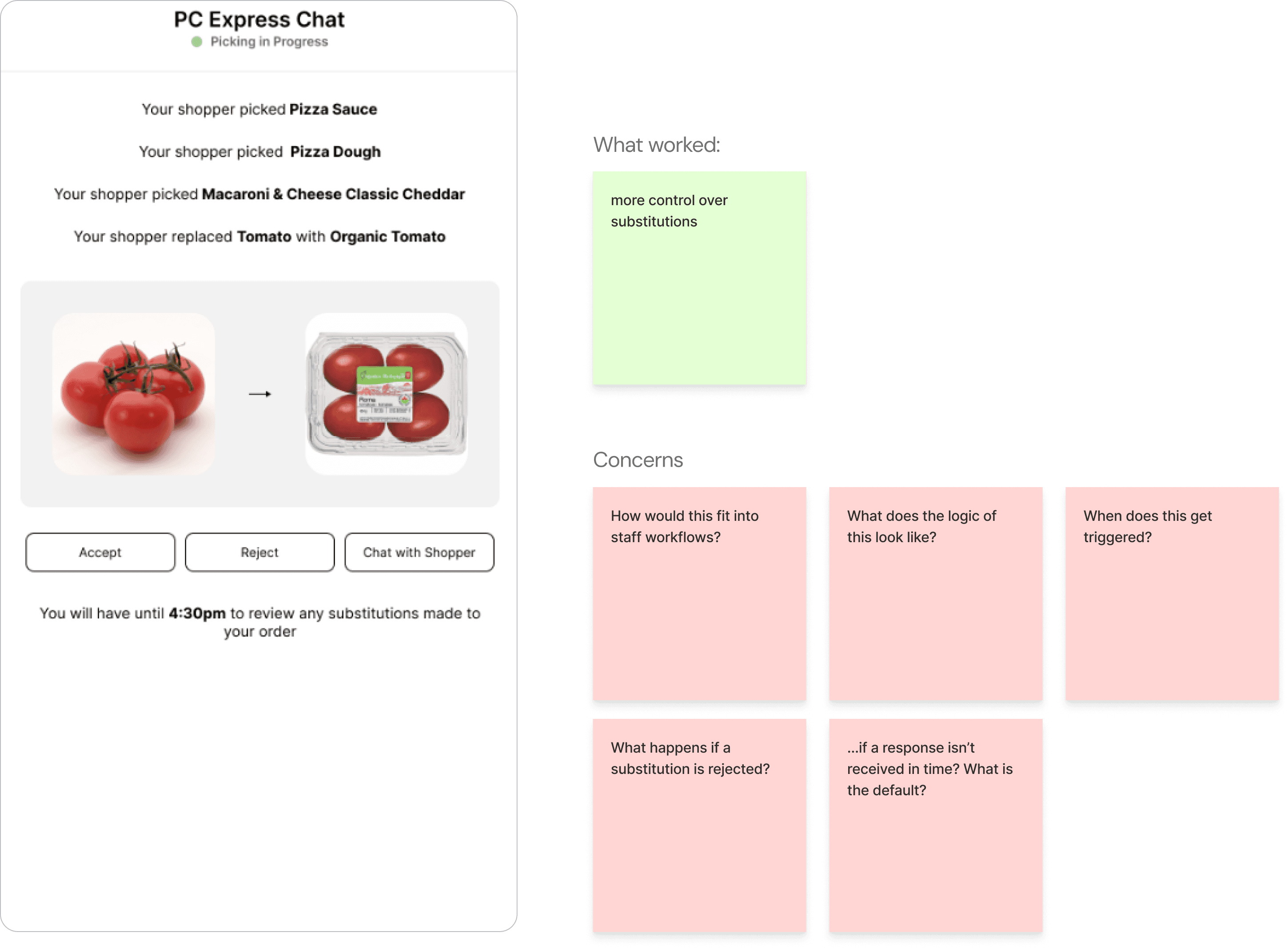 We explored several concepts targeting key breakdowns during order fulfillment and substitution handling.