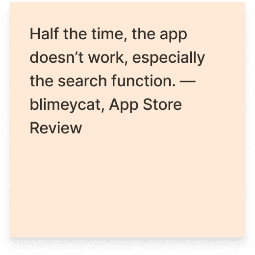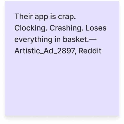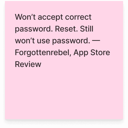 Since we didn’t have access to conduct primary research, we analyzed App Store reviews and Reddit discussions to explore the client’s pain points and validate our own experience.