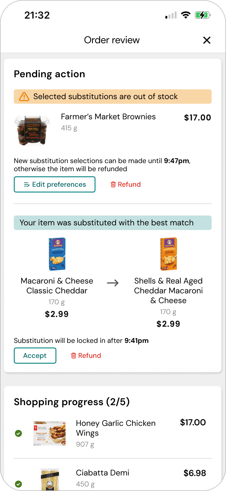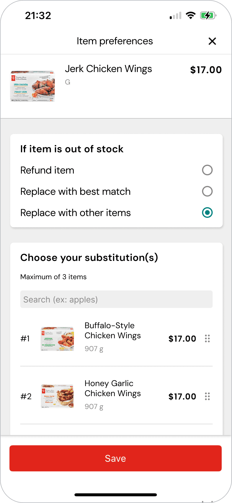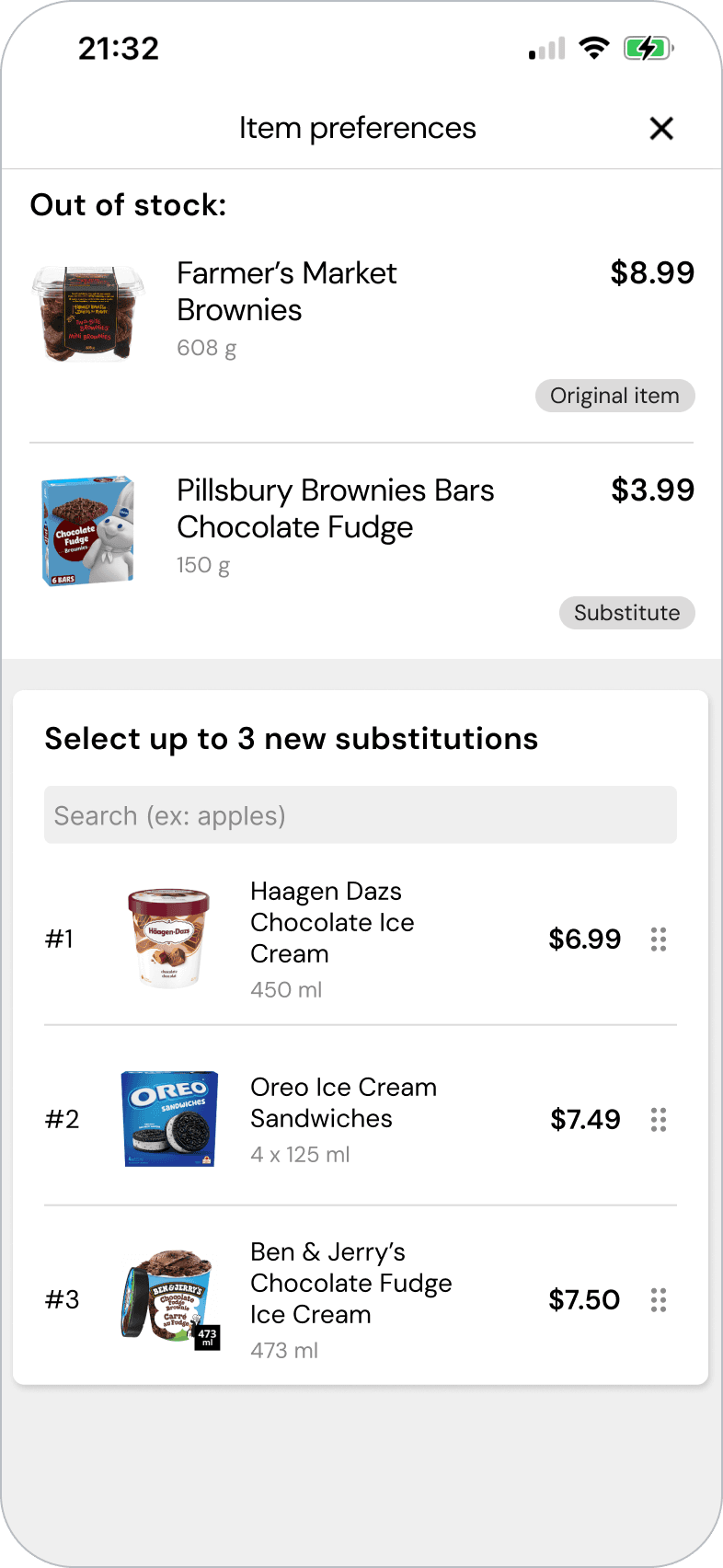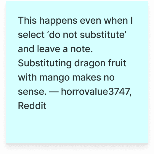 From our own experience as customers, not all items are important enough to require a substitution, we designed a framework that allows customers to clearly communicate how substitutions should be handled in the app.