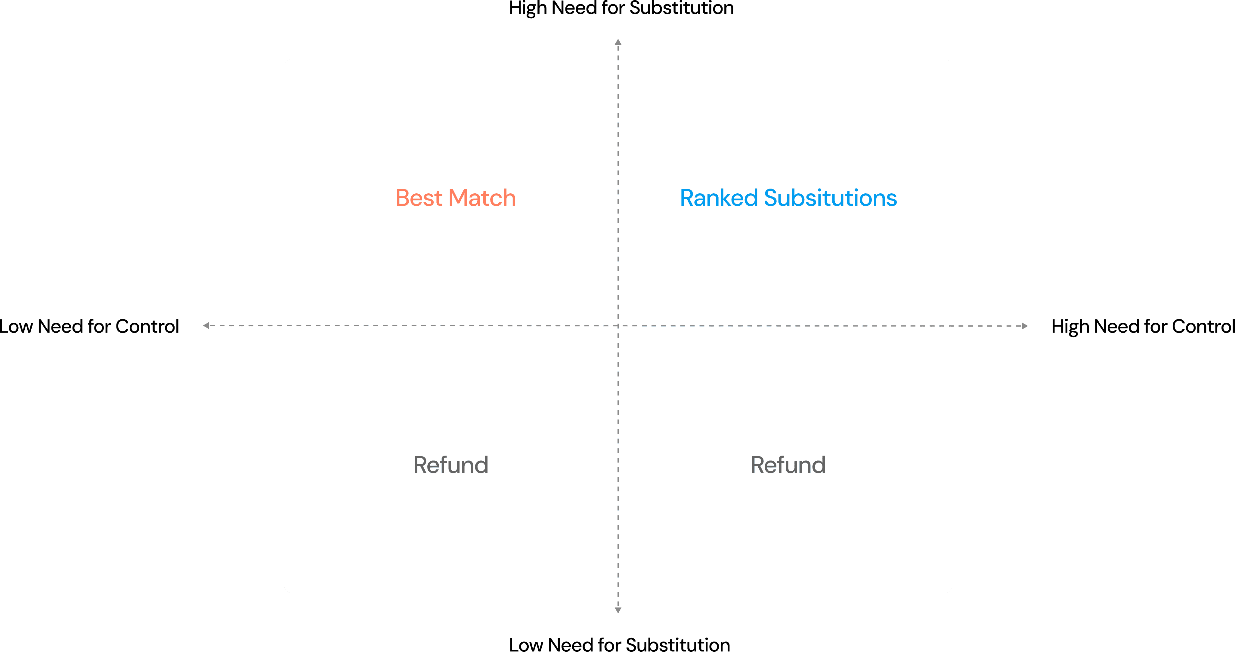 Customers have the ability to communicate their desired level of control and replacement: Refund, Replace with best match or ranked alternatives.