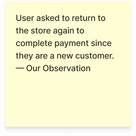 To move beyond the user facing touchpoints, we mapped the service blueprint to examine how customer actions, staff workflows, and supporting systems interact.