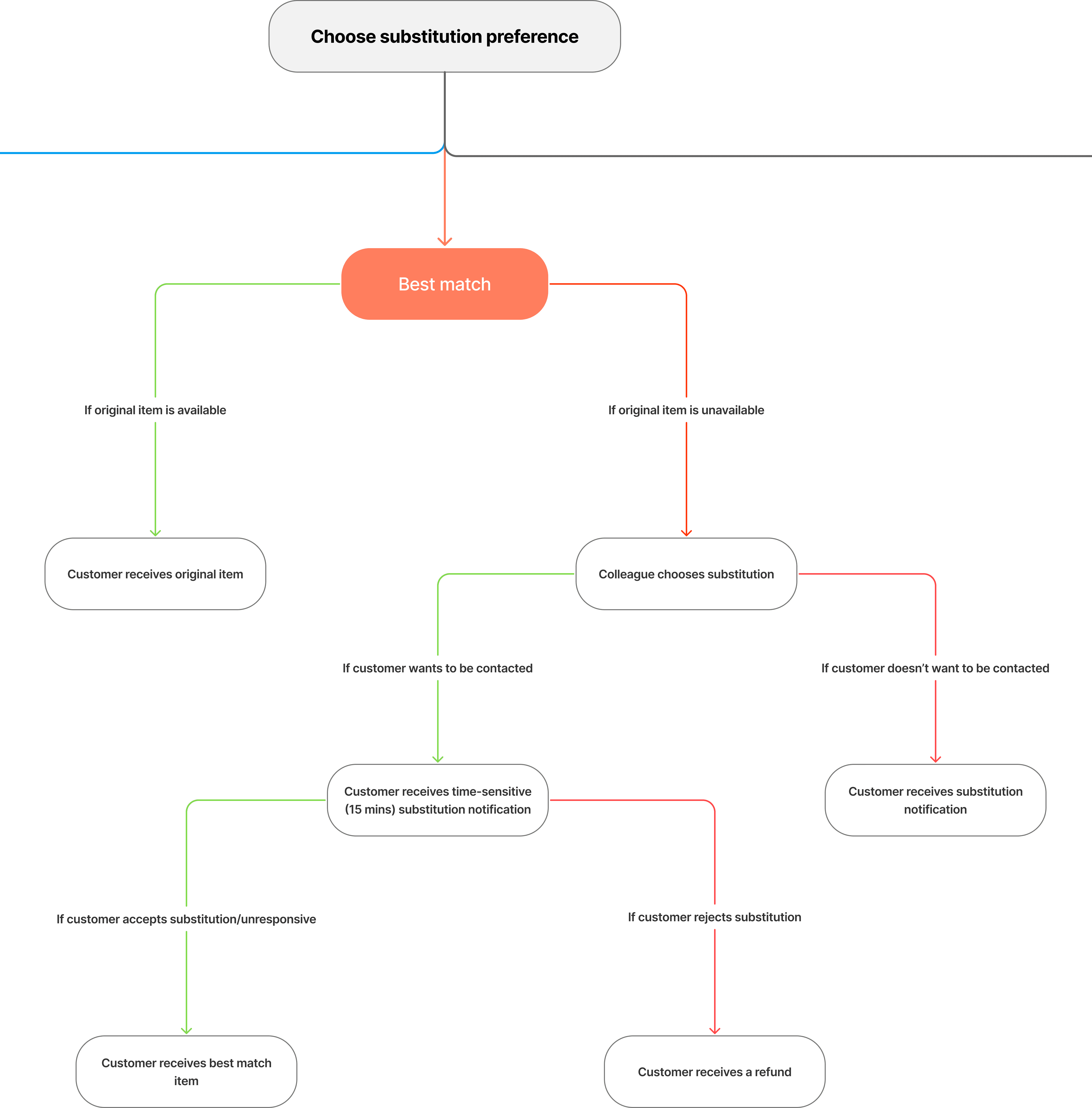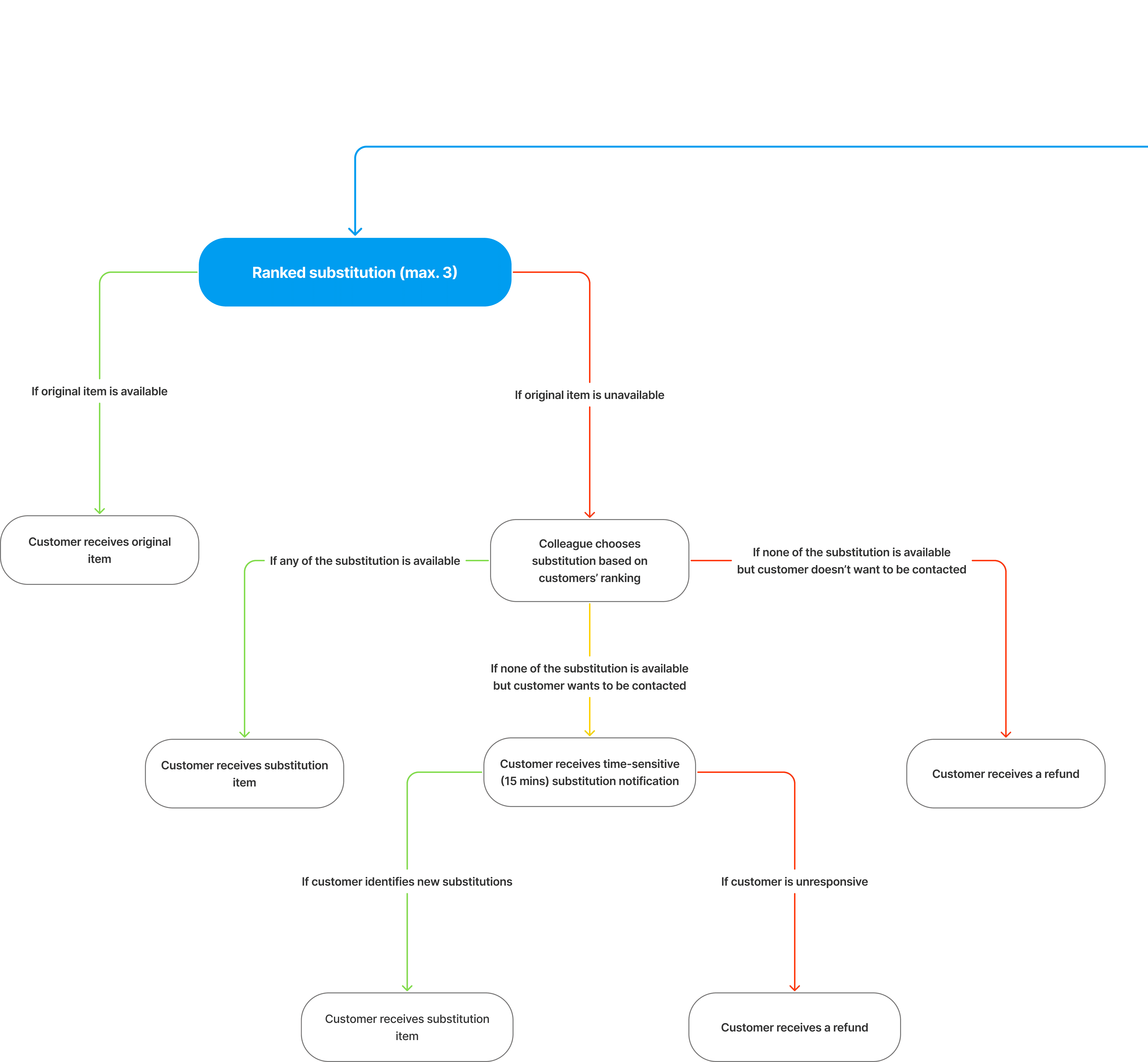 A framework that helps customers and staff handle out-of-stock items through clear substitution preferences, real-time updates, and coordinated decision paths.